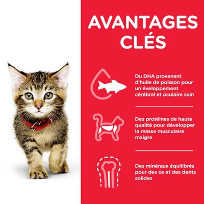Les croquettes Hill's Science Plan Kitten poulet pour chaton couvrent les besoins élevés énergétiques et en nutritionnels aussi bien pour les jeunes chatons que pour les chattes en période de gestation et de lactation.Caractéristiques des croquettes Hill's Science Plan Kitten au poulet pour chat :